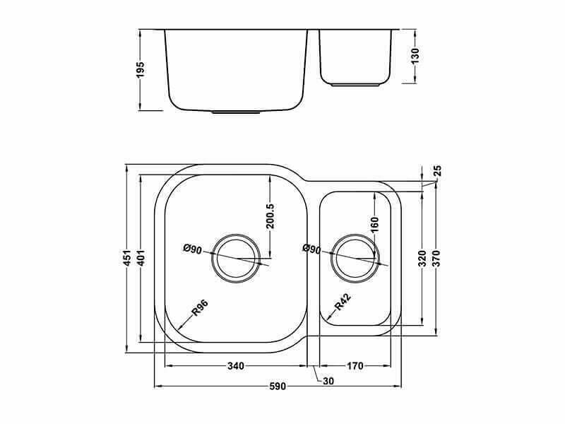 ETRODUO 589/450U REV Stainless Steel Undermount Sink From 1810