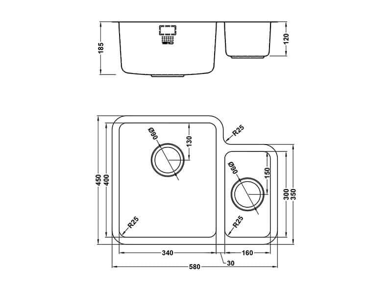 - Undermount bowl