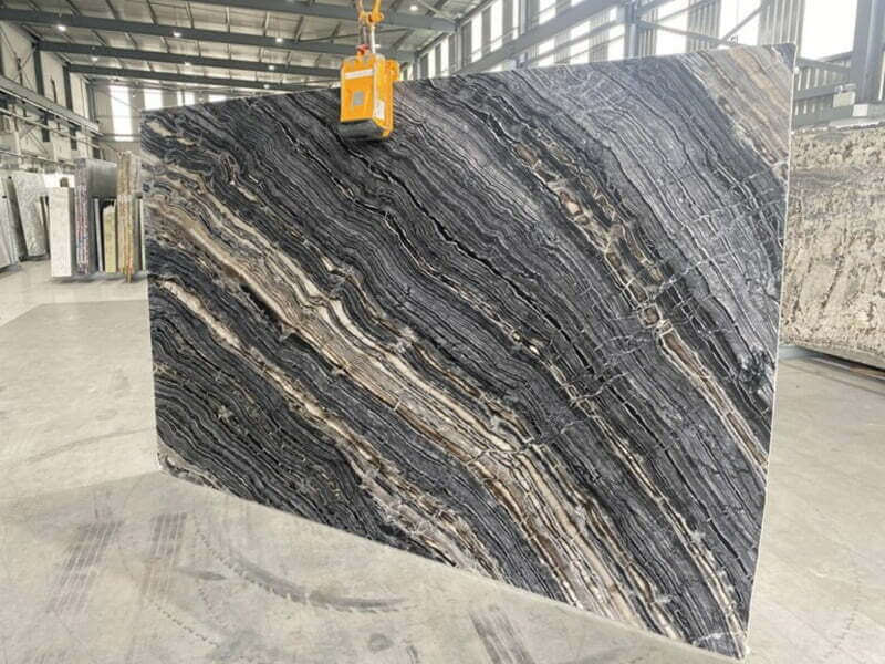 Topsco Worktops Present This Stunning Black Leathered Patterned Zebra Gold Marble Worktop